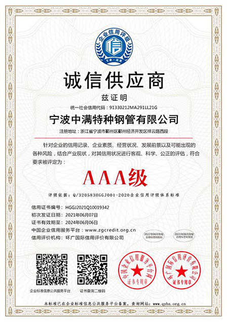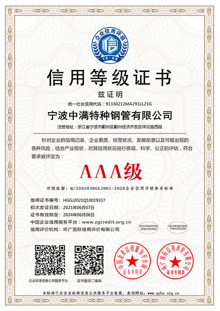 寧波中滿特種鋼管有限公司是一家專業生產精密光亮無縫鋼管、碳結鋼無縫鋼管、合金鋼管、異型鋼管、方管、六角鋼管、無氧光亮退火精密鋼管、汽車零部件用精密無縫鋼管、高壓膠管管芯用精密管。